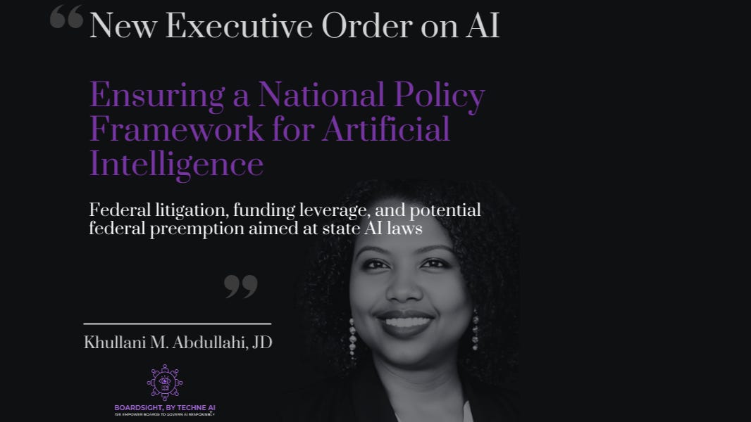 New Executive Order on AI (Ensuring a National Policy Framework for Artificial Intelligence): Board Director Perspective