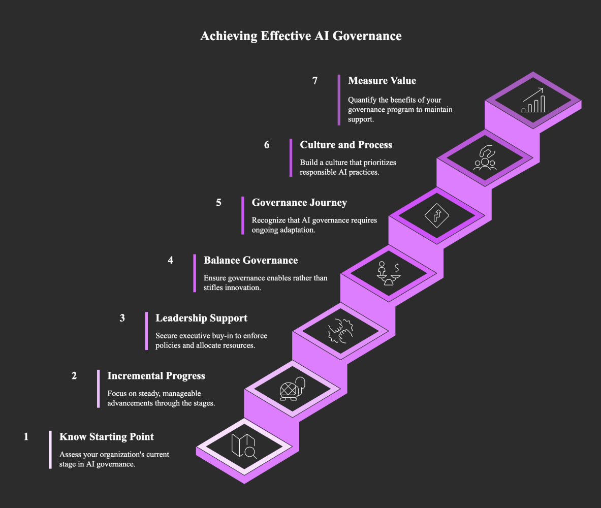 Governance is a Journey, Not a Destination: The AI landscape continues to evolve rapidly with new technologies, regulations, and ethical considerations. Even organizations at Stage 7 must continuously adapt their governance approaches.