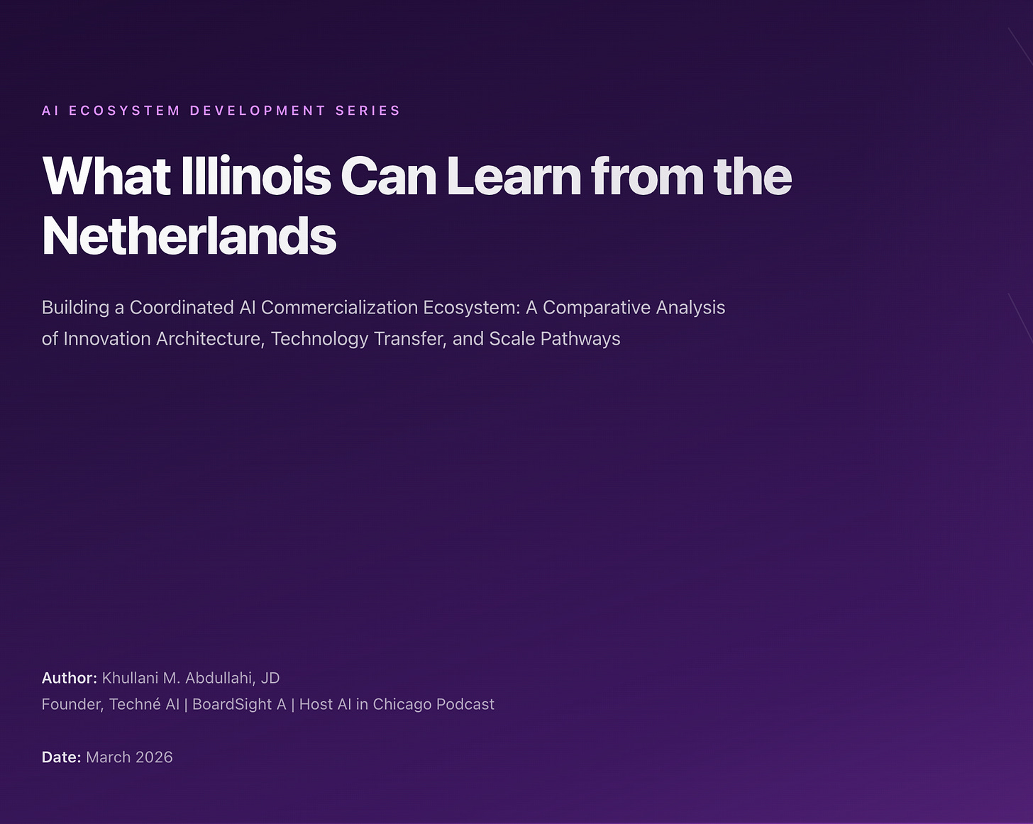 The implication for Illinois is practical. The state has world-class ingredients—universities, national labs, corporate demand, and civic innovation capacity—but needs a more cohesive operating system to convert those ingredients into durable AI competitiveness.